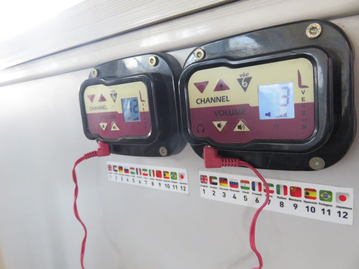 各座席にはイヤホンジャックが付いていて、そこにイヤホンを指すとガイドが流れます。12ヶ国語対応で日本語もありますので、ガイドを聞きながら乗り降りせずに快適に名所を巡るのも良いかも。(イヤホンは最初にチケットを発見した際にもらえます。)