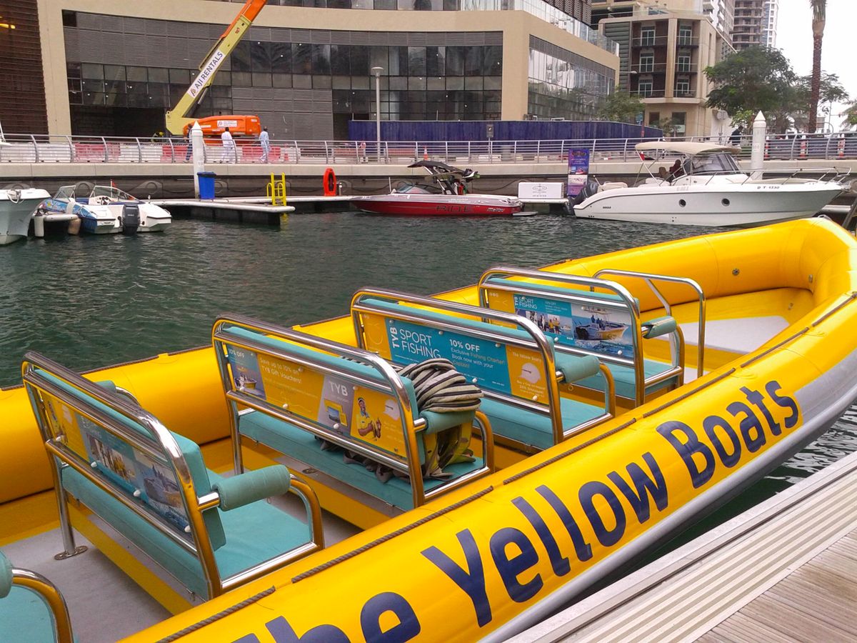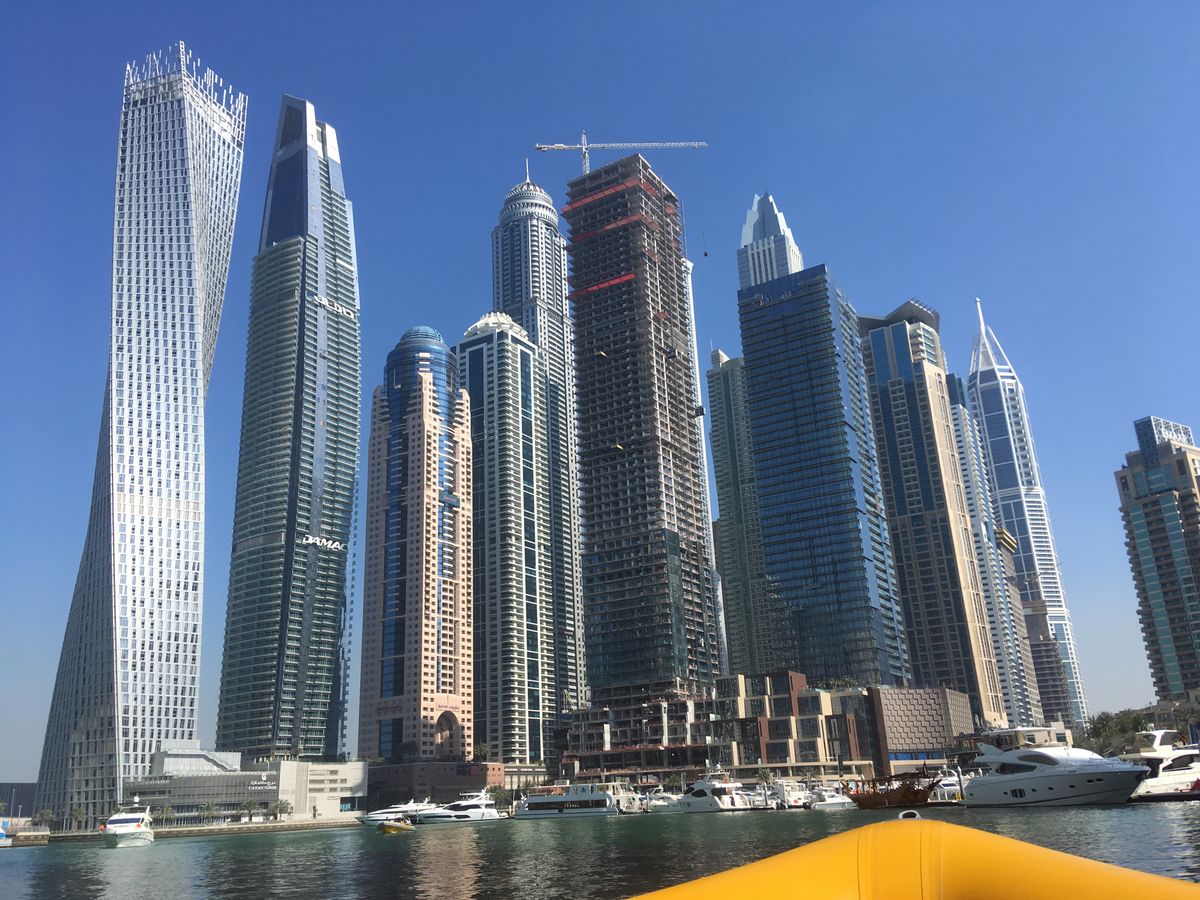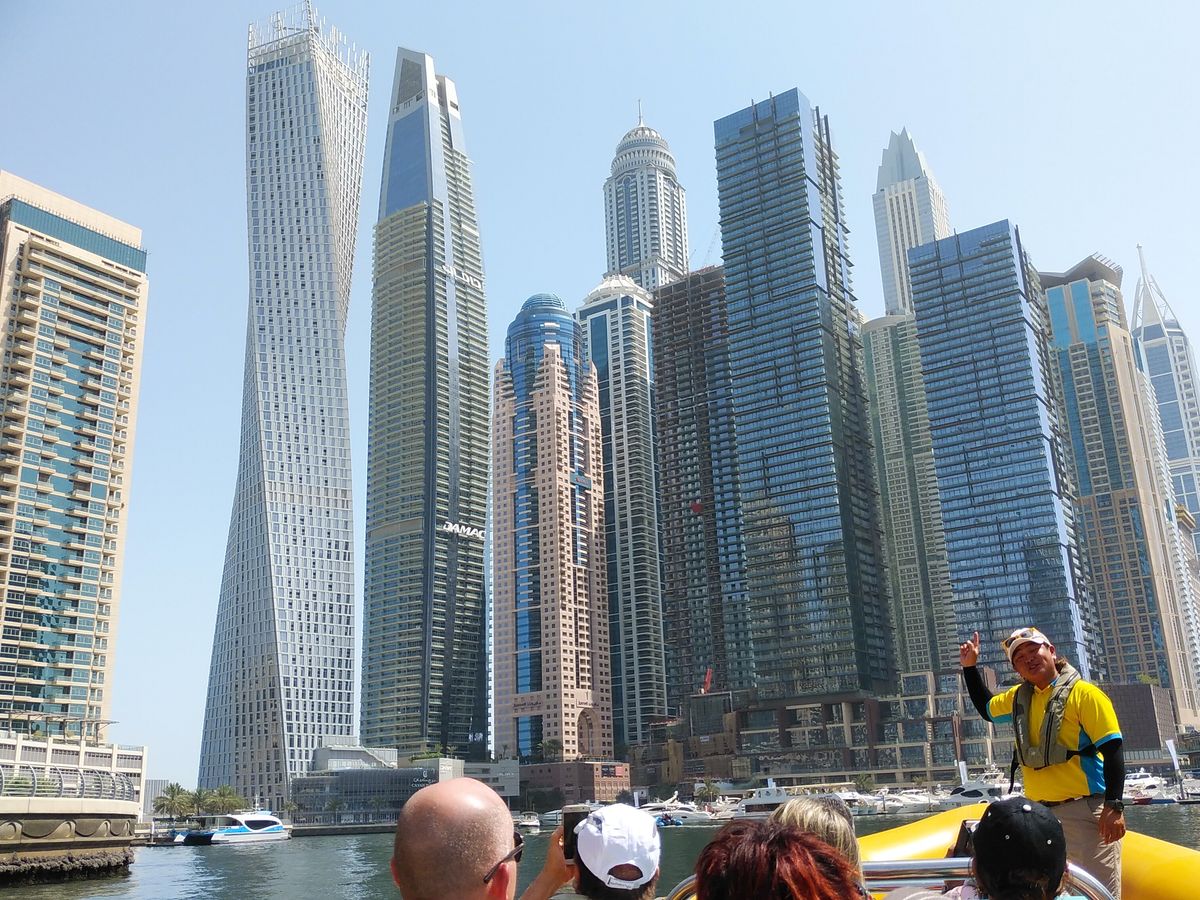 ドバイ・マリーナ(20分の乗船体験)までリビエラホテルから時間がかかります。その後他の日本人グループ2組と合流。