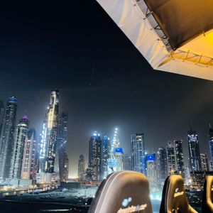 8月に日曜日(土曜日夜はやや高い)18時〜参加しました。行きはメトロで行き、SOBHA REALTY駅(Dubai INTERNET CITY駅の2つ先が目印)で乗り換え、Mina Seyahi駅(2つ目)までで中心地より約50分くらい(電車内はまあまあ混んでました)。そこから歩ける距離ですが、暑いのでタクシーがお勧め。降りる駅は小さいですが、タクシーは近くを沢山走ってます。ひろってタクシーで、ゼロ・グラビティ(待ち合わせ場所)まで約10分。そこまで行けばすぐわかります!早く着いてもクーラーありの待合室で開始まで待てます。ドバイの日の入り時間を考えて、我々も参加した1830〜がお勧めかと。最初は夕日、最後は夜景が堪能できます。娘は15歳で参加しましたが、最初は怖がっていましたが一番楽しんでました。従業員の人達は、色々な写真(動画も)を撮ってくれます。自分での撮影は自撮り棒は必須かも!!周りの景色良し!(パームジュメイラは見えない。観覧車は綺麗)但し、足元見るとやはり怖かったです。安全対策はバッチリでしたが。。料理はお肉美味しかった!デザートはアイスがパホーマンスもあるのでお勧め(食事は予約時に選ぶ)!!食事と体験は1hで十分堪能です!!帰りのタクシーは気をつけて。高級タクシーのみ待ってます。まあ時間を優先ならそのままタクシーで帰るのが早いです。我々も翌日帰国だったので、タクシー使用(因みにコンラッド迄220AED取られました)。食事は美味しい。景色も良し。従業員のパホーマンスも良し。体験としては中々できない事かと(最近日本にもありますが)。値段OKなら是非ご参加をお勧めします。
