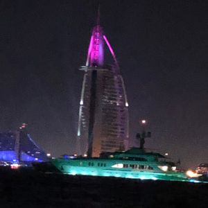 イエローボートに乗ってアトランティスザパームを経由してブルジュアルアラブに停泊し、花火鑑賞。とても良かったです。、