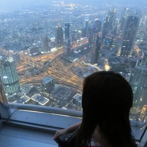 ハネムーンでドバイに行きました。ドバイに来たら絶対登らなあかん思ってネット予約でチケットを事前に購入しました。当日は予約していた為か行列に並ばず、すぐに入れました。頂上に着くと綺麗な夜景が。昼間と迷いましたが夜に登りました。建設中のビルや工事中の土地が多かったせいか、少し殺風景にも思いました。夜景なら大阪のハルカスの方が綺麗です。でももう2度と登れないと思うので凄くいい経験ができました。