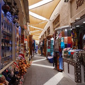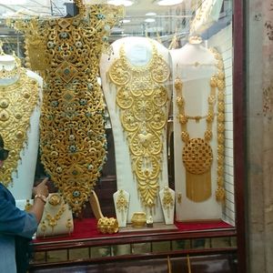 スークでは買い物の補助もしてくれます。ドバイモールで値段を比べてわかりましたが、スークの交渉後価格のほうが安かったです。金の価格は比べてないのでわかりませんが織物はスーク内のほうが安そうです。