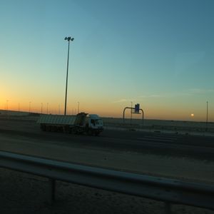 エミレーツパレスでゆっくりアフタヌーンティーをした後、ドバイへの帰路につきましたが、大きく美しい夕日を車内から見ることができ、家族だけでしたので、車内でキャーキャーと喜んで写真や動画をとることができたのも楽しかったです。