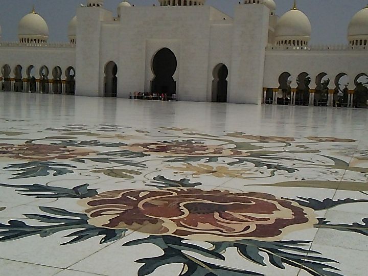 ホテルまでお迎えが有り、それから一緒に行く人達と合流し、大きなバスでアブダビへ向かいました。スタッフの人も感じの良い人で楽しかったです。お天気がとても良い日でモスクの白さが際立ってました。(´∀`)服装を気にしながら行ったけど、思っていた程うるさい感じもなく入りました。モスクは本当に素晴らしくガイドさんの説明も解りやすく、私の質問にもすぐに答えてくれました!(^^)!
