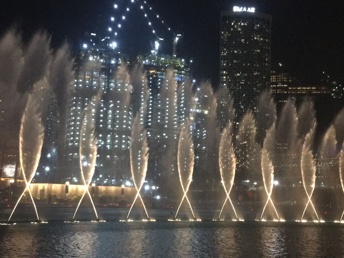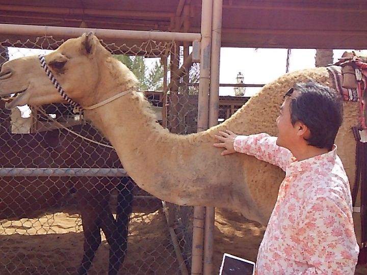 アブダビのモスク、5星ホテルのランチ、ラクダにも遭遇できたし、ドバイモールにドバイファウンテンの展望台、最後にアルマーニレストランで夕食を頂きながらの噴水ショー とほんとうに盛りだくさんのツアーです。朝8時にホテルでピックアップされ、ホテルの戻りは22時30分でした。