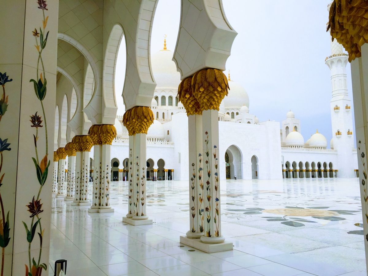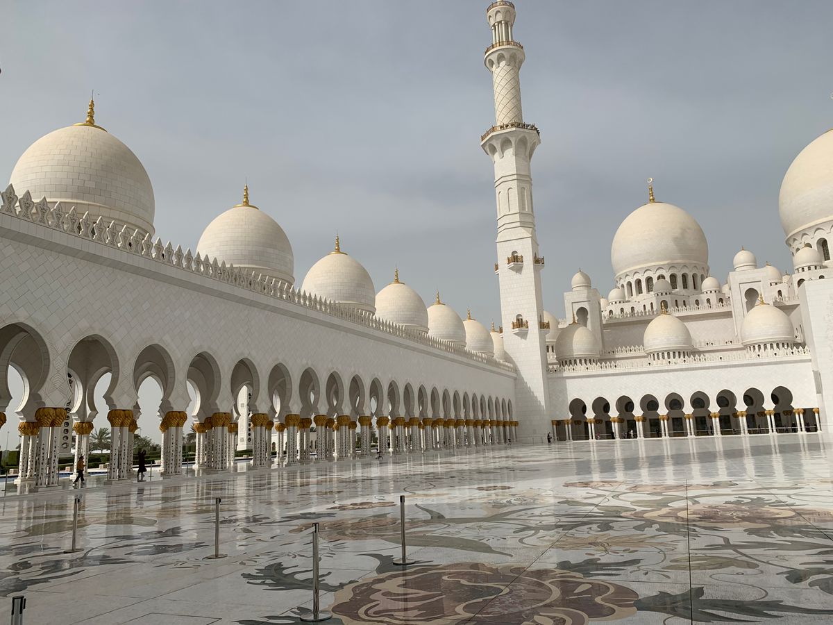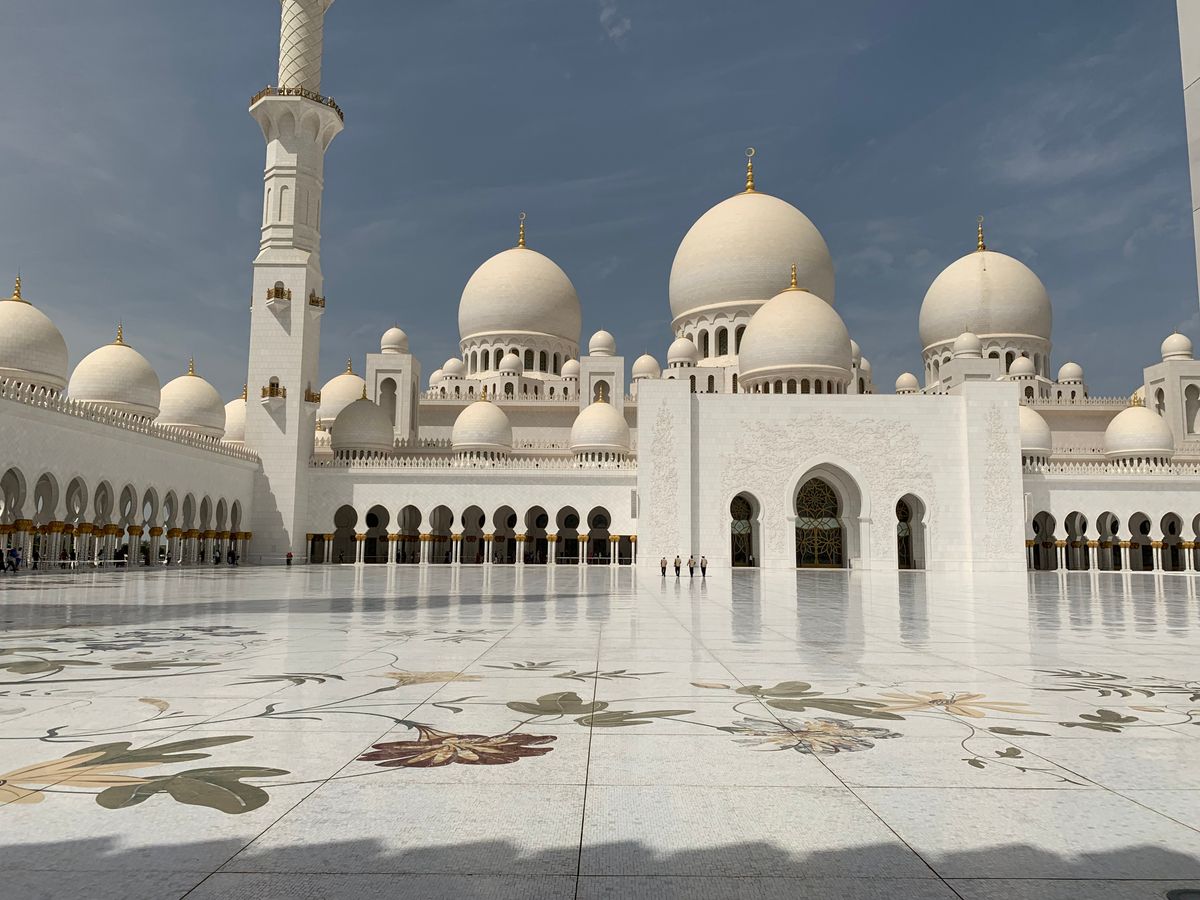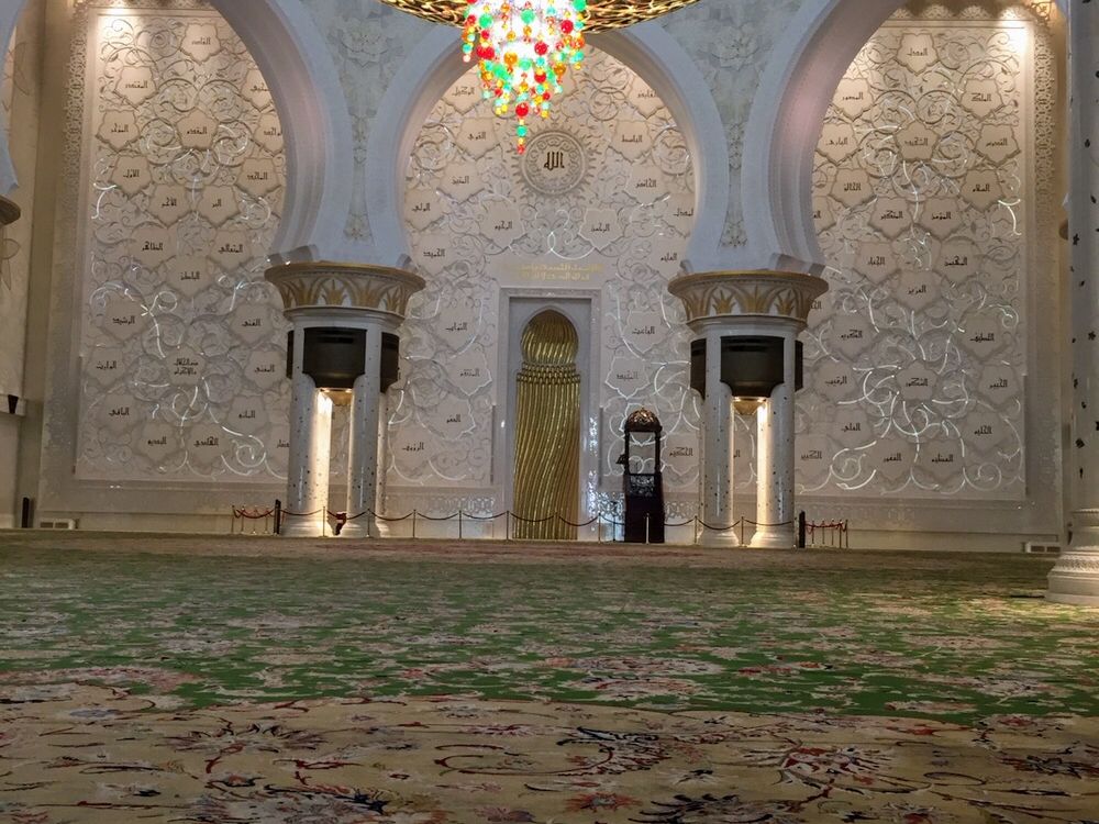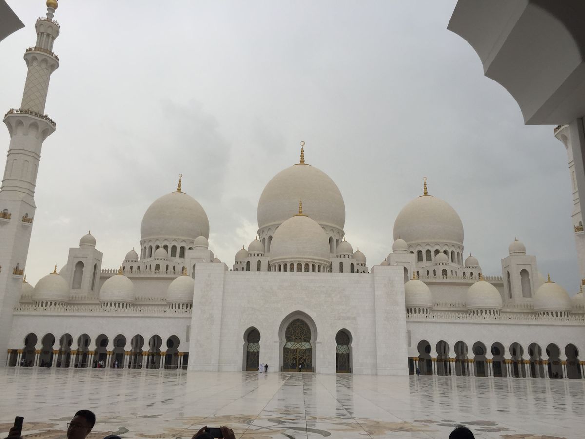 モスクに入ったのは初めてですが、この世のものとは思えないほど綺麗でした。床からすべて真っ白な大理石で、美しいタイルのモザイクにシャンデリア、世界一大きなペルシャ絨毯と溜め息の出る美しさでした。