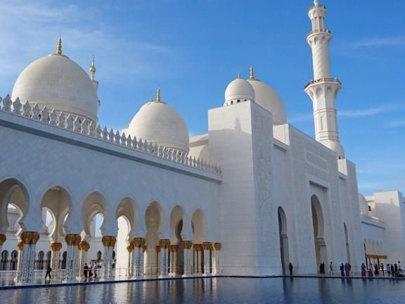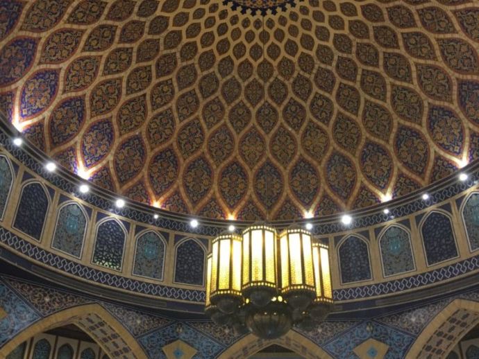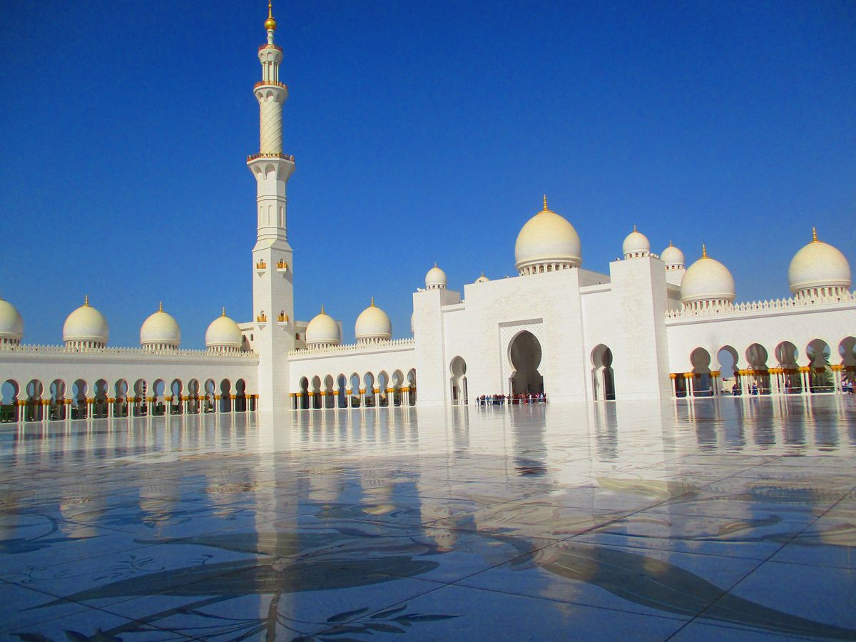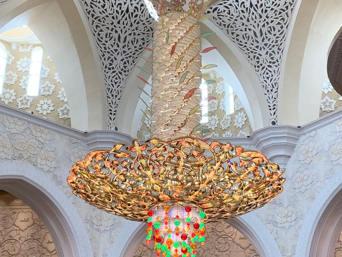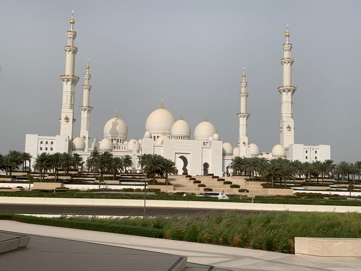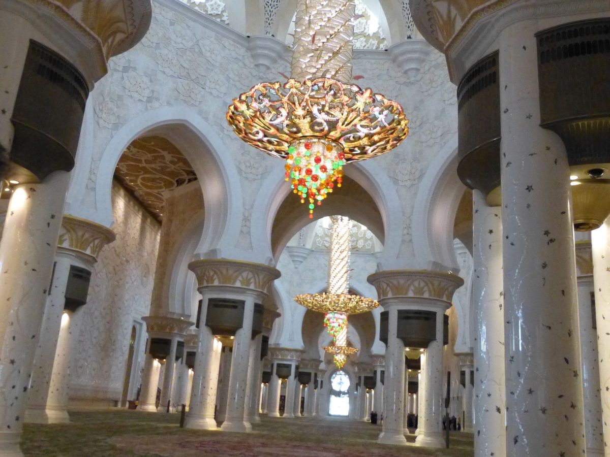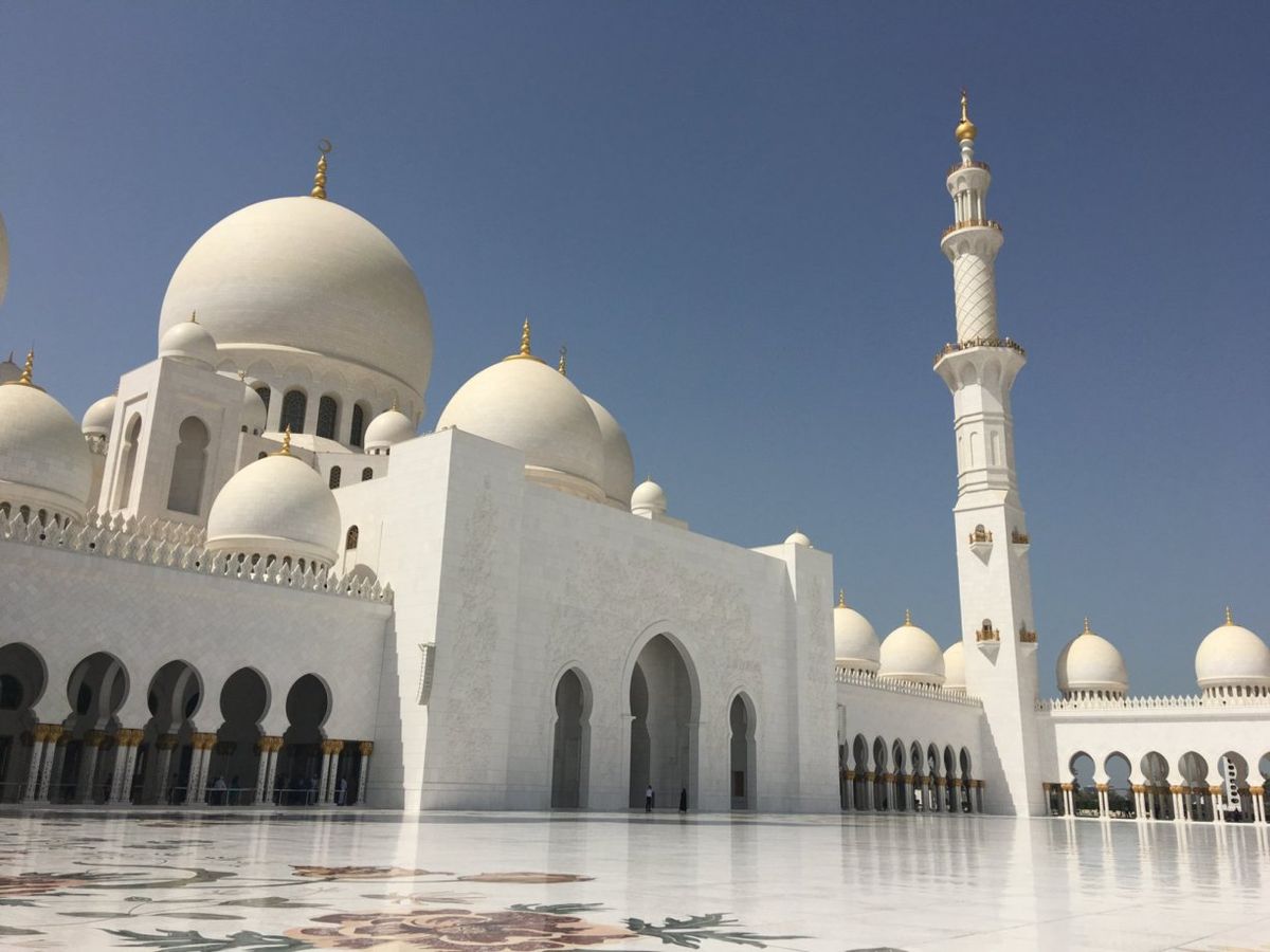モスクに入ったのは初めてですが、この世のものとは思えないほど綺麗でした。床からすべて真っ白な大理石で、美しいタイルのモザイクにシャンデリア、世界一大きなペルシャ絨毯と溜め息の出る美しさでした。