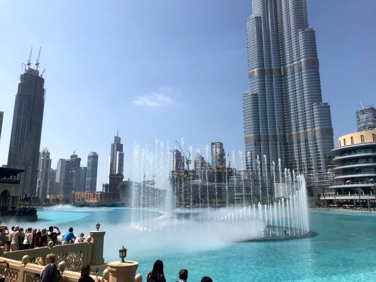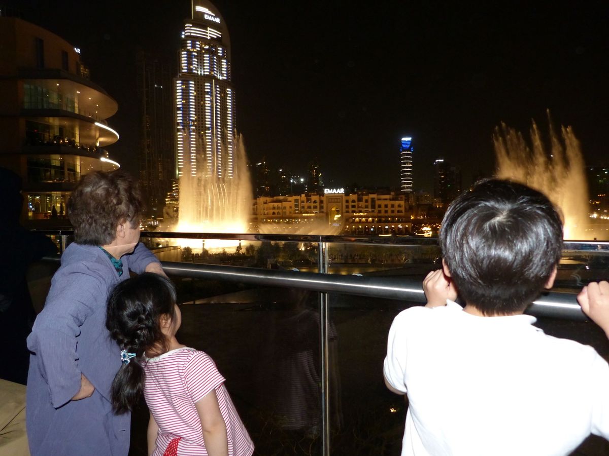 ドバイでは日本と違って、モールや観光箇所に休憩するソファーなどがほとんどないので、ディナーのころにはかなり歩き疲れましたが、食事もドバイファウンテンを見ながらゆっくり楽しむことができました。時間に余裕がある方はアブラにのって近くでみたら、もっと迫力を楽しめそうです。