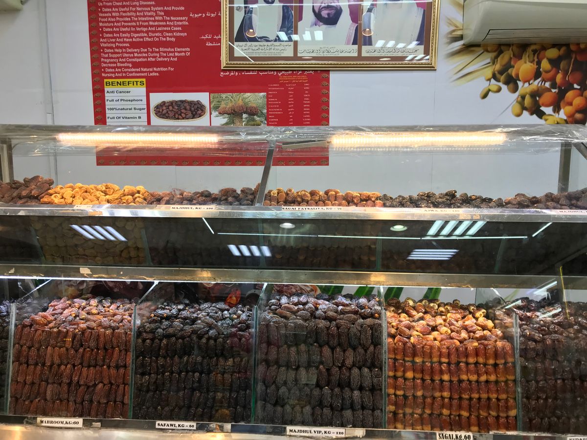 午前中に市場に行きましたが、お土産のデーツを買うならおすすめです。種類も多く、味見もでき値段もお手頃です。量り売りもあれば、ひとつづつパッケージに入ったものもありました。真ん中にアーモンドが入って、周りをチョコでコーティングされたものを買い、会社の人に配りましたが、おいしいと好評でした。