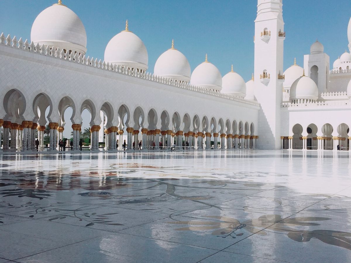 アブダビの街並みはとても素敵でした。エメラルドグリーンの海の色と豪華な宮殿やホテル、そして響き渡るアザーン…。はるばる来てよかった…と心から思えました。