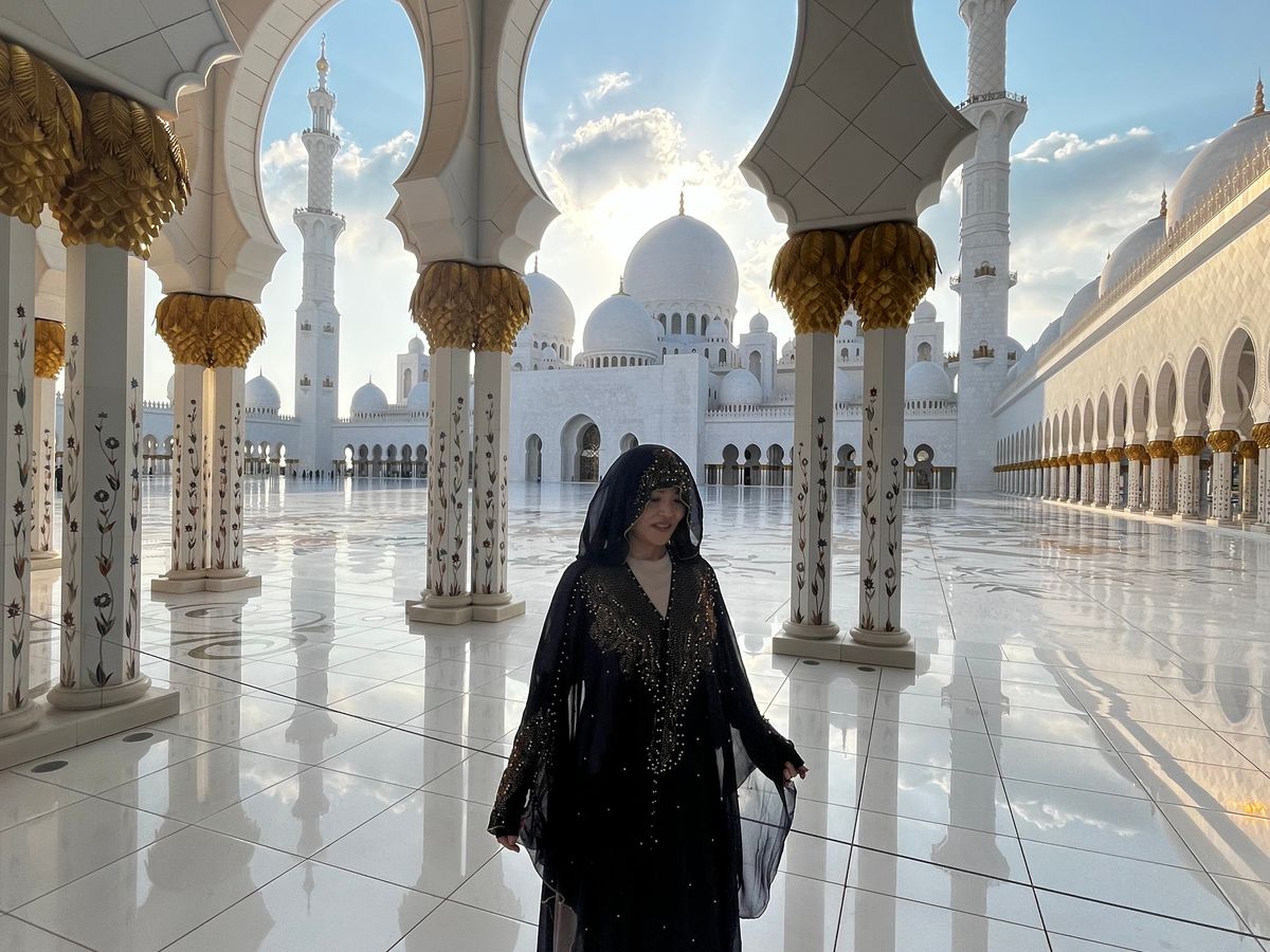 モスクは思った以上に服装規制が厳しくて、透け感のあるアバヤはNGでした。