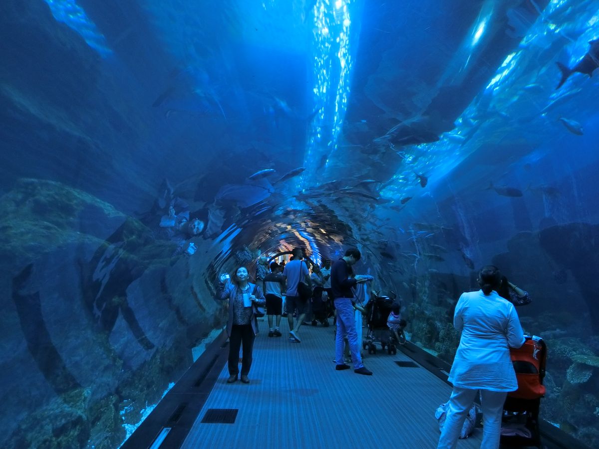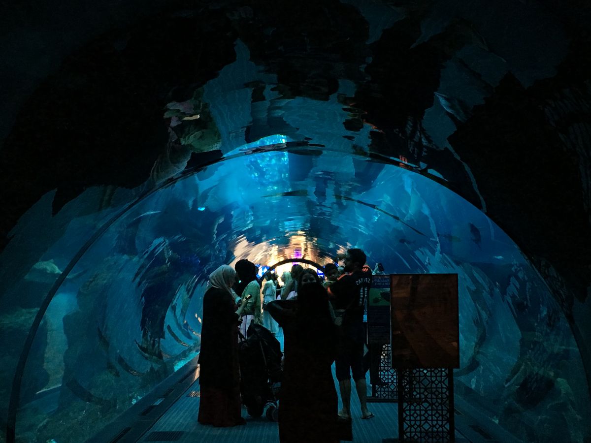 ドバイモールでも一際人だかりができている場所に巨大な水槽はありました!本当に大きくて間近でみるのもいいですが、入る前に上の階にあがって巨大な水槽を見たら圧巻でした。水槽の前を通ってリストバンドを見せるとサメも泳ぐ水槽の中を通り抜けることができました。非常に至近距離でサメを見ることができました。そんなに混雑もなくゆっくりと見ることができました。その後は上の階にあがって改めて入口を入ることになるので、本当に上がったらいいのかどこから入ればいいのか少しだけ不安になりました(笑)係員が立っている場所でリストバンドを見せるとすんなり入ることができました。専門のガイドの案内のもと水族館のバックヤードを巡り、その後は魚・クラゲ・爬虫類・両生類さまざまな動物たちをみることができました。ペンギンは大人気でしたが、個人的にはハリネズミとコツメカワウソが可愛かったです。