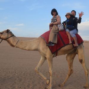 特にラクダ乗り体験では,7歳の息子が怖がってラクダに乗るのをずっと拒否していました。すると現地スタッフの方が上手に誘導してくださって(写真を撮るだけだからと,座っているラクダに乗るよう自然に誘導),ラクダを立たせ,ラクダに乗ることができました。当初,怖がっていた息子も大喜びで,日本のおじいちゃん,おばあちゃんにラクダに乗ったことを自慢していました。親としても,このような体験をさせていただき,とても嬉しく大変感謝しております。