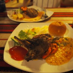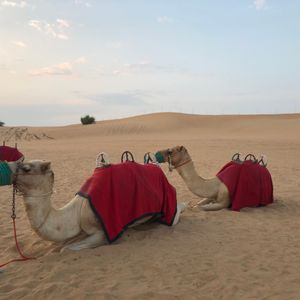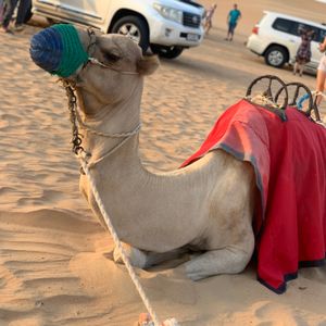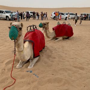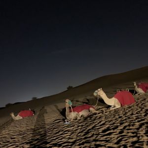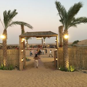 アラビアンBBQディナーは広い会場の割に人が少なくてちょっと寂しい感じ。多過ぎるよりいいですが、料理は期待したほどではなかったです。らくだに乗るのにたくさんの人が並びますが、皆が乗り終わった後、誰もいなくなってから乗ることが出来ました。夜は寒いかと思ってましたが長袖シャツで大丈夫でした。