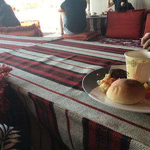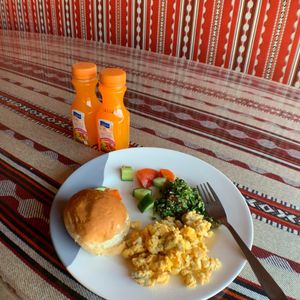 ラクダ乗り場の目の前に、朝食スペースがあり、そこでアラビアコーヒー?や水タバコの体験もできました。朝食は簡易なものでしたが十分美味しかったです。