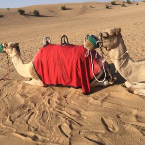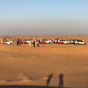 出発時間前にフィリピン人のガイドの方が電話をくれ、ランドクルーザーにて気持ちよく出発。砂漠に向かう途中、いろいろとドバイの街についても紹介してくれました。砂漠到着、ガゼルやオリックスもたくさん見て、そこから、砂丘ドライブ。抑え目の運転をお願いしましたが、それでも、砂の山の乗り越え(特に急落下)などは大迫力でした。一つ残念だったのは、キャンプサイト到着後、ラクダ乗り体験等の案内がなかったこと(貸し切りチャーターなので、こちらの入口と言われ、正規の入口ではないところから入ったため判らなかった)そのまま説明なく、ガイドがいなくなってしまったため、自分で、ラクダ乗り体験の場所を探しに行くことになりました。結果として乗れましたが(正規の入口のすぐそばに沢山のラクダがいます。)初めに一言教えてくれれば、もっと明るいうちに乗れたのにと残念でした。