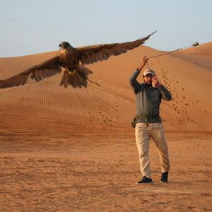 ただ楽しみにしていたサンドボードは、何組かに一つしか貸してもらえず、私達の車が集合場所に着くのが遅かったせいか、ボードを渡された瞬間にファルコンショーが始まってしまい急かされました。