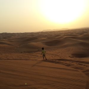 砂漠では裸足になるとイイと運転手に言われ、裸足で砂漠を歩きましたが砂がサラサラでとても気持ちよかったです。子ども達も裸足で走り回ってました。