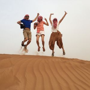 年末に82歳の母を含む家族6人で参加させて頂きました。砂の砂漠を見たくて行きましたが、本当に最高でした。野生のラクダ?も歩いていて子供も大満足。ライドも楽しく、砂漠での食事も美味しく頂きました。これで送迎付きでこのお値段は安いです。ドバイに行くなら参加しないと損です。