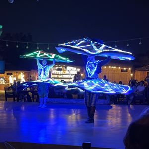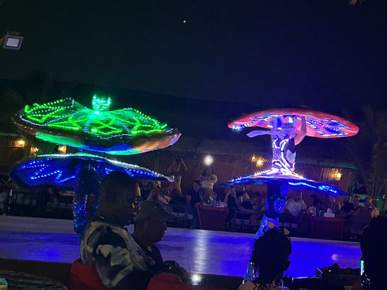食事の面ではBBQのお肉が出る前のサモサ?やケバブ?や甘いデザートなど、どれも美味しくてお肉の前にお腹は満たされていました。ファイヤーショーも見応えあって、最後の砂漠にラクダの演出が可愛かったです。