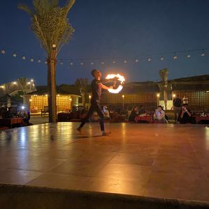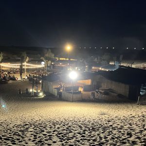 ・100~200人くらいが集まるキャンプ地で、ラクダ乗り体験、水たばこ体験、タトゥー体験などができる(こちらはフリー)。そのうち、舞台でファイヤーダンスやベリーダンスのショーが始まり、それを眺めながら、ビュッフェ形式で食事を楽しんだ(複数のキャンプが点在していて同様の催しが実施されている様子)。