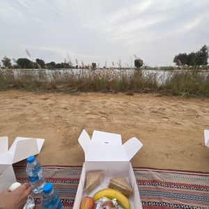 また、日の出を待つ際に頂いたデーツとアラビックコーヒーは美味しかったですし、日の出を見た後に池のほとりで頂いた朝食ボックス(サンドウィッチ、フルーツなど)も美味しかったです。