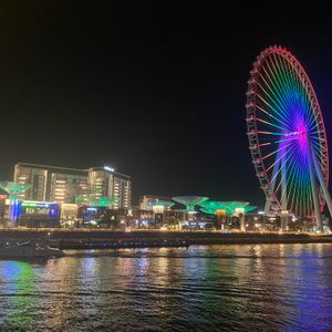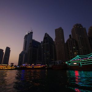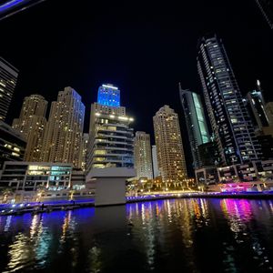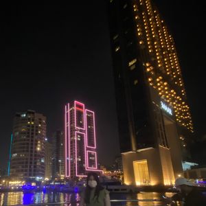 ・ドバイマリーナへ向かうクルーズですが、夜景はそれなりに綺麗で取れ高もあります。