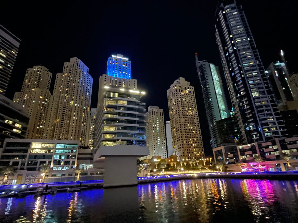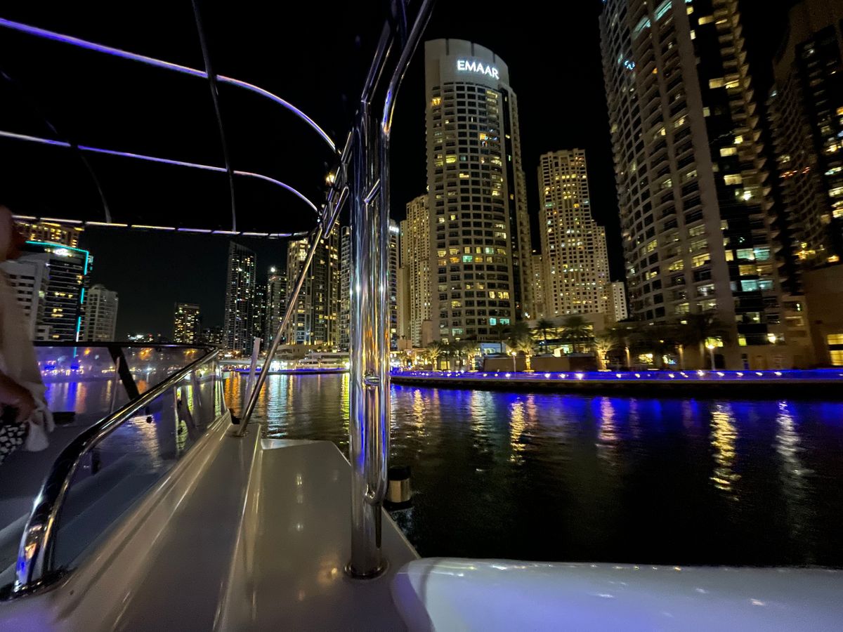 ・ドバイマリーナへ向かうクルーズですが、夜景はそれなりに綺麗で取れ高もあります。