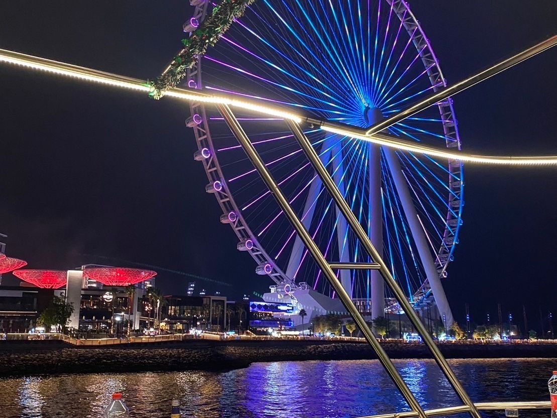 夜は海風で案外冷えるから羽織ものは必要なのとドバイはタクシー拾うのが一苦労なのでクルージングからの下船の際は事前にexit前に並んでおく事をお勧めします。