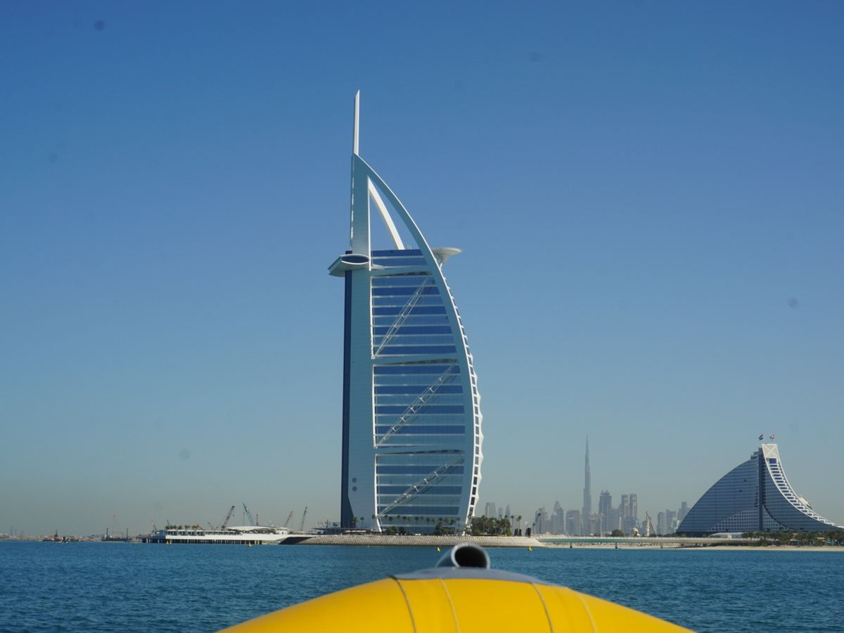 ドバイマリーナをボートでゆっくり移動すると、そのあとは一気にスピードをあげてアトランティス・ブルジュアラブなどのスポットまで飛ばして行きました!とてもエキサイティングで楽しかったです。