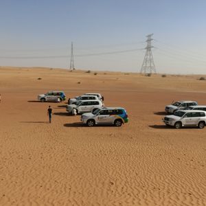 20台(全車トヨタの4WD)ほどで砂漠のサファリエリアに行きます。かなりUP-DOWNしますし、横転すれすれの際どい揺れを体験できます。