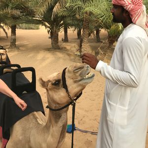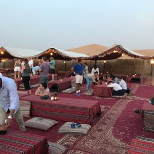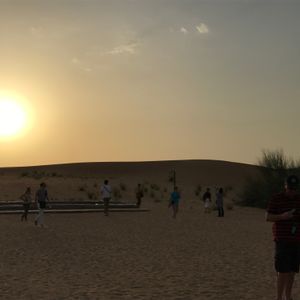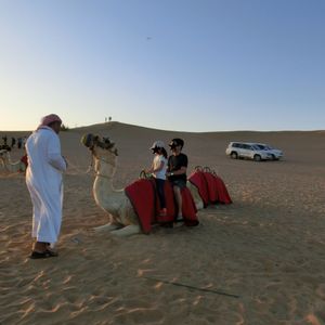 ドバイのトランジットで今回のツアーに参加させて頂きました! 待ち合わせは空港に近いホテル。場所はわかりやすかったです。パキスタン出身のドライバーさん、ニュージーランドから一人旅で来てる男性、そして私たち日本人2人で車に乗り砂漠へ。みんな英語で楽しく喋りながらすぐでした。砂漠に入ってからはもう常にジェットコースターのようにぐるぐる走ってくれるのですごい楽しかったのですが、これがまだ1時間くらい続くので酔います(笑) 酔い止めを飲んでいましたが長すぎました。ですが酔ったことをドライバーさんに伝えると比較的まっすぐな道を走ってくれます。キャンプ地に着いてからはラクダに乗ったりヘナタトゥーをしたりバーベキューをしたり、アラビアンナイトを楽しめます。キャンプには他にも様々な国籍の人たちが集まってるのでたくさん交流があります。とても楽しかったです! そして事前にネットから頼んでいたバースデーサプライズ、豪華にやって頂けました! 大きくて可愛いケーキを出してくれて妹は喜んでくれました。私も嬉しくて一生の思い出になりました。ありがとうございます!