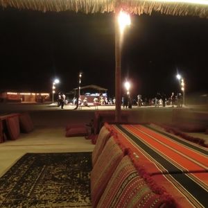 初めての砂漠、サファリはみんな酔うとコメントがあったので、子供には酔い止めを用意してましたがそんなにたいしたことはないです。運転手も注意は促していたけど、今まで自分が乗せた人で酔った人はいないって言っていました。ラクダも少し一周するだけでつまらないな~と思っていたけど、ラクダが立ち上がるときなどしっかり捉まっていないと振動がすごいです^^これでレースをするなんて!と思いました。他にイラン人とロシア人のビジネスマンと一緒でお友達になって、ディナーの時も一緒に話しをしながら時間を過ごすことができて、水パイプも初めての体験!証明が消えて夜空の星だけになったときは感動でした^^