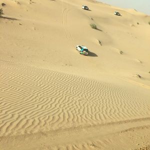 10台以上の車が連なって砂漠を横断するのですが、ドライバーの好意?かちょっと外れてアクロバティックに走ってる車もありました。砂が覆いかぶさるように走ったりして、すごく楽しかったです。