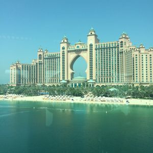 スライダー乗り場から見えるアラビア湾は美しく、クルーザーが停泊しているビーチも素敵でした。