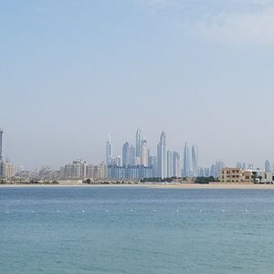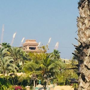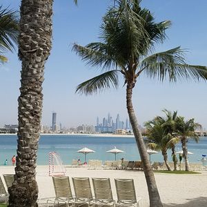 敷地伝いに、ビーチにも出られます。プライベートビーチみたいになっていて、海で泳いだり、お昼寝したりできました。遠くにドバイのビル群も見れます。