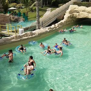巨大なウォータースライダーや、浮き輪に載って流れるプールがあって、大人もとても楽しめます。流れるプールは、ところどころ急流みたいなところがありますが、そんなに激しくはないです。ウォータースライダーは、激しいコースと、ファミリー向けのコースがあって、よく分からずに激しい方に乗ってしまって大変でした。