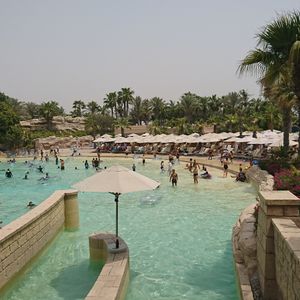 ロッカールームは別途料金が必要で、1人45ディルハムでした。入場してすぐのところで支払います。タオルも借りれますが、暑いし、すぐ乾くし、いらないかな。入場ゲートの脇で、靴下みたいな感じのそのままプールに入れる靴が売っていますので、買うと便利です。サンダルで場内に入ると、流れるプールに入る時に邪魔になる(スタート地点にサンダルを置いていくと、浮き輪を途中下車できない)し、裸足で歩き回ると足が熱すぎるので。飲み物を買ったり、ご飯を食べるのにお金が必要なので、防水の袋に入れて身に付けられると便利です。私は、防水のスマホケースの中にお金も入れて首から下げていました。