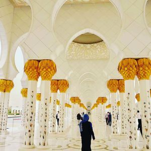 女2人で行きました。英語ツアーと確認せずに予約してしまいました・・・ガイドさんのアブダビの説明が分からなかったけど、親切でゆっくり話してくれました。モスクの服装はくるぶしの少し上ぐらいのガウチョとシャツを羽織っていきました。髪の毛はひとつにしてストールをかぶって隠せるように。一緒のツアーの女の子はスカートが短くて(ふくらはぎくらい)現地で50AEDのアバヤ購入してました。モスクの中はとにかく白い、装飾がきれい!絶対に行く価値があると思います。フェラーリワールドも行きましたが、どの乗り物も空いていてブロンズで充分でした。ジェットコースター好きならすごく楽しいとおもいます。世界最速のは今まで体験したことなかったです。