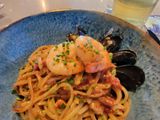 ランチは、魚介のパスタが食べたいとわがままを言って、お店を探していただきました。