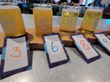 歩いて近くのお店に来店し、店内が見渡せるカウンターに着席しました。カナダのクラフトビールを飲んでみたかったので4種飲み比べセットとプーティンを注文しました。