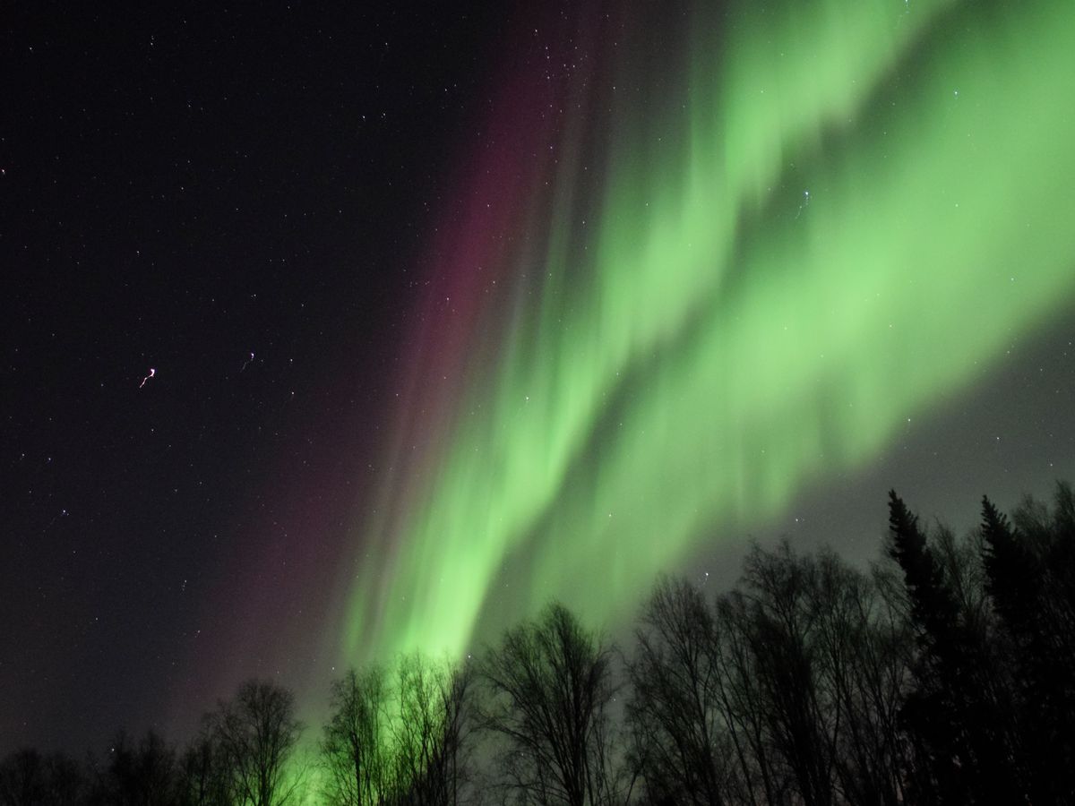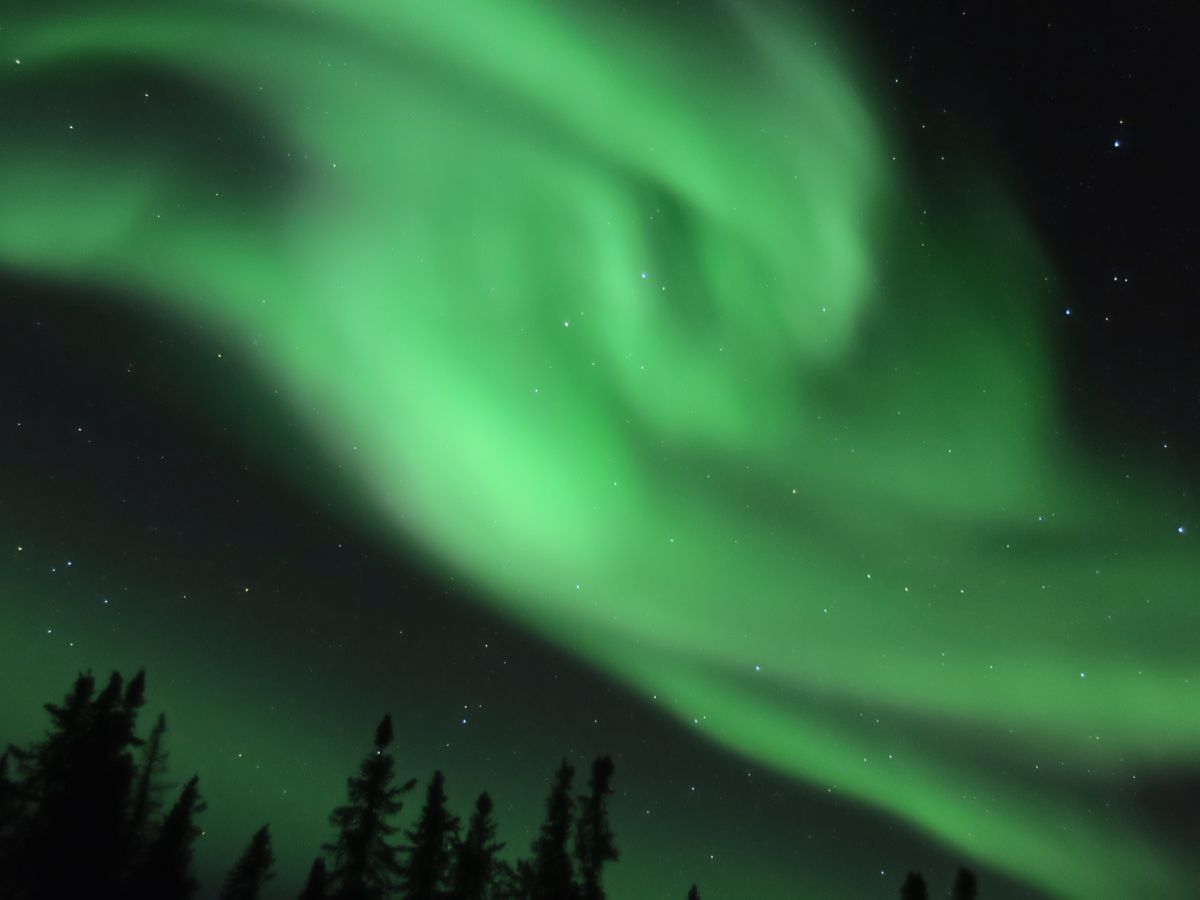 肉眼で観るオーロラは色を強く感じづらいので、カメラを持って行くと良いです。