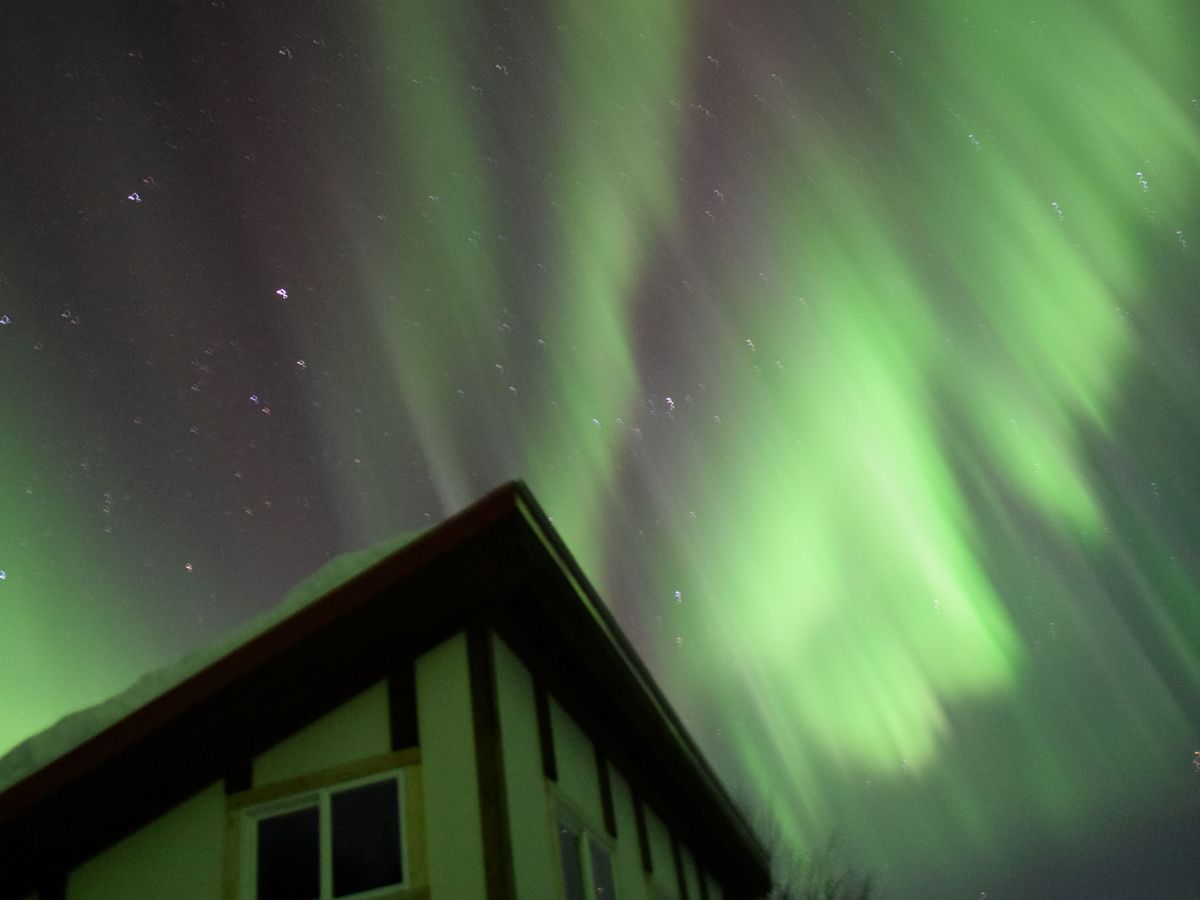 ガイドさんのご自宅離れとなる、オーロラ観測ロッジで鑑賞です。
