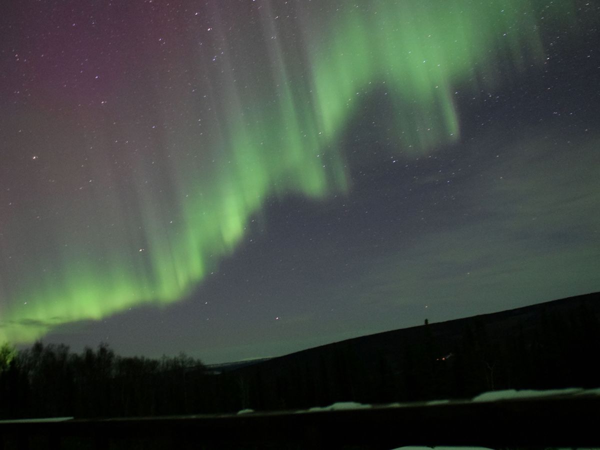そしたら残り火的にオーロラを鑑賞できました。到着直後は、色付きのカーテン状もちらほら目撃できました。