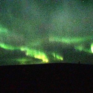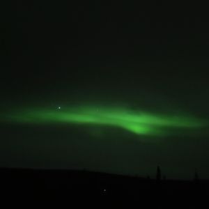 最初に目撃した時は「これかぁ~」と感動し、この日はオーロラの勢いも良く、緑色カーテンがユラユラ揺れる様もはっきり確認できました…というより一晩中ずっと出現しては消えて、また出現を繰り返していました。