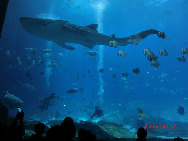 ジョージア水族館は、大きなシンベイザメが3匹もゆったりと泳ぐ姿を堪能できます。