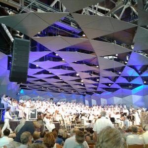 芝生席は各自食べ物やワインなどを持ち込んでピクニックの雰囲気でしたが、演奏中はとても静かです。芝生はステージに向かって見やすくスロープになっているという訳ではありませんので、ステージを見ることは期待できません。地元の人は皆さん持ち込んでいましたが、ロースタイルチェアがあると楽ですね。会場内でもレンタル($5)しています。