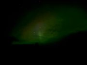 弱いオーロラを見ることができました。 肉眼では、明るくなっているのはわかる程度ですが、カメラを10秒露光すると緑色に見えます。