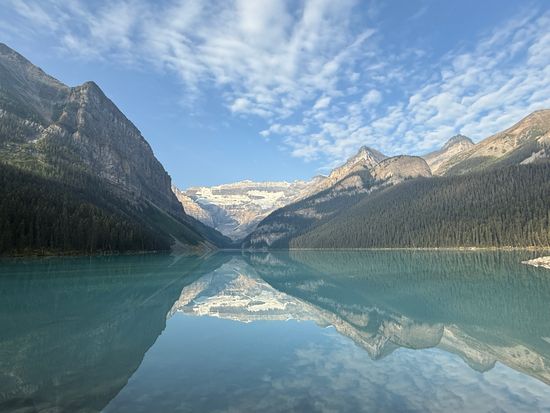 旧20ドル紙幣の絵柄にも使われたカナディアンロッキーを代表する有名な湖。湖畔から高台へ上がると絶景が広がります。