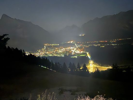 ロッキーの山々に囲まれたバンフの街を一望できる夜景スポット。冬でも寒く見えない様に工夫された暖色の街灯など、小さいですが温かみのある夜景をお楽しみください。